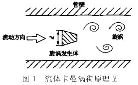 渦街流量計(jì)是應(yīng)用流體振蕩原理來測(cè)量流量的。流體在管道中經(jīng)過渦街流量計(jì)時(shí),在三角柱旋渦發(fā)生體兩側(cè)交替產(chǎn)生規(guī)則的旋渦,這種旋渦稱為卡曼渦街,如圖圖1所示體。