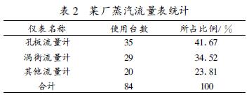 國內(nèi)目前使用比較流行的蒸汽流量計(jì)有孔板流量計(jì)、渦街流量計(jì)等。表2對某廠1990年在用的流量計(jì)進(jìn)行了初步統(tǒng)計(jì),表明孔板流量計(jì)和渦街流量計(jì)的使用占有主流地位。
