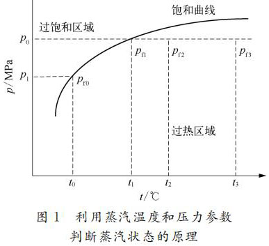 利用蒸汽的溫度壓力參數(shù)自動判斷蒸汽處于過熱狀態(tài)還是飽和狀態(tài),原理如圖1所示。關鍵是判斷蒸汽的溫度壓力值是落在臨界飽和曲線的下方還是上方,如果落在下方,則為過熱狀態(tài);如果落在上方,則為飽和狀態(tài)。