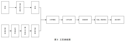 1.1 偏心爐+LF 爐雙聯(lián)冶煉工藝,鋼包冷調(diào)、熱裝一體化孔板流量計(jì)工藝路線圖簡介如圖 1。
