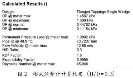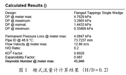 (4)根據(jù)工藝要求及現(xiàn)場(chǎng)安裝環(huán)境選擇耐壓、耐溫等級(jí)、防護(hù)等級(jí)、防爆等級(jí)、輸出信號(hào)等。3測(cè)量熱解氣的渦街流量計(jì)的選型設(shè)計(jì)熱解氣的組分如表1所述,其工藝參數(shù):操作密度0.63kg/m3,運(yùn)動(dòng)粘度2×10-5m2/s,操作溫度48.9℃,操作壓力7.5kPa,管道DN80,*小流量50Nm3/h,正常流量100Nm3/h,*大流量150Nm3/h,儀表測(cè)量范圍選擇0~180Nm3/h。因?yàn)楸狙b置為試驗(yàn)裝置,在裝置運(yùn)行的過程中,業(yè)主可能會(huì)根據(jù)需要適當(dāng)調(diào)整參數(shù),因此選擇量程比寬一些的流量計(jì)會(huì)有助于調(diào)整后的測(cè)量;另外熱解氣作為產(chǎn)品之一,其流量是驗(yàn)證工藝與關(guān)鍵設(shè)備的工程可行性、優(yōu)化工藝參數(shù)的關(guān)鍵參數(shù)之一,因此使用精度高一些的流量計(jì)也是有必要的;熱解氣的組分隨著參數(shù)的調(diào)整也可能會(huì)發(fā)生變化,因此基于伯努利方程原理的,如孔板、噴嘴、阿牛巴、德爾塔巴、平衡式等都不能很好的測(cè)量,因?yàn)檫@類流量計(jì)受流體物性(密度、粘度)和組分變化影響,且*終的熱解氣產(chǎn)品或多或少都有焦油的存在,時(shí)間長(zhǎng)了可能堵塞流量計(jì)。楔式流量計(jì)帶自清潔的功能,如果采用法蘭取壓,變送器采用隔膜密封式變送器,其受焦油的影響較小,楔式流量計(jì)的計(jì)算結(jié)果分別見圖1和圖2。