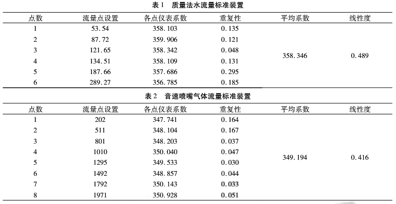 本次測試采用的兩套標準裝置具有較高的不確定度和穩(wěn)定度,并且通過甘肅省質(zhì)量技術(shù)監(jiān)督局的考核認證,可以作為計量標準向下傳遞。