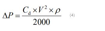 式中:△P--流量計(jì)產(chǎn)生的yongjiu壓力損失,kPa;Cd--渦街流量表阻力系數(shù),由其結(jié)構(gòu)決定;V--流體工況流速,通常取非常高流速,m/s;ρ--流體工況密度,kg/m3。
