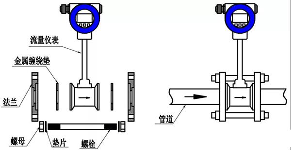 (2)將流量計(jì)取下,把法蘭按要求焊接好,并清理管道內(nèi)所有凸出部分。