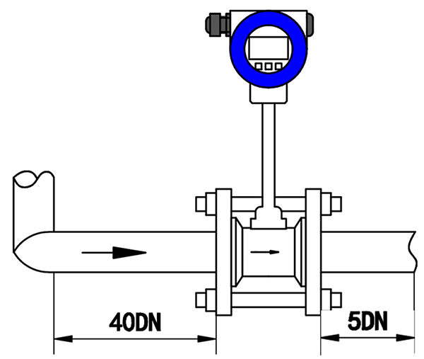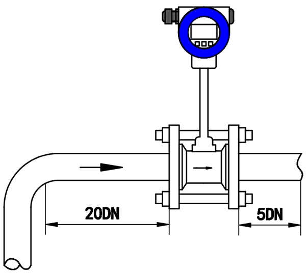 2、調(diào)節(jié)閥盡可能不安裝在渦街流量?jī)x表的上游,而應(yīng)安裝在壓縮空氣流量計(jì)的下游10D處。