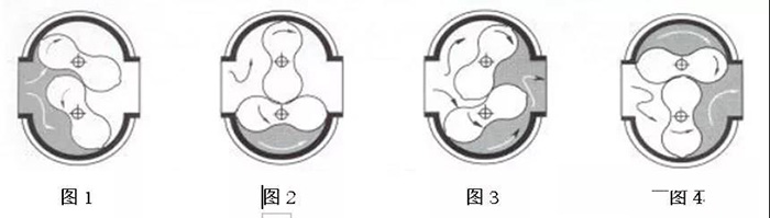 當(dāng)被測流體流經(jīng)流量計時,流體的動壓力使進(jìn)出口間形成一個差壓而推動腰輪旋轉(zhuǎn)。當(dāng)流體推動一個腰輪順時針轉(zhuǎn)動時(如圖1)與之相連另一個腰輪逆時針轉(zhuǎn)動,轉(zhuǎn)動90°后成為(圖2)狀態(tài),腰輪受流體推動繼續(xù)轉(zhuǎn)動轉(zhuǎn)動時(圖2),與之相連的驅(qū)動齒輪帶動軸上的腰輪逆時針轉(zhuǎn)動,轉(zhuǎn)動135°后成為(圖3)狀態(tài),腰輪繼續(xù)轉(zhuǎn)動,腰輪旋轉(zhuǎn)360°時(圖4),有四倍于計量室有效有效容積的流體排除流量計。這樣,兩個腰輪交換驅(qū)動旋轉(zhuǎn),隨著腰輪的轉(zhuǎn)動,流體徑有計量室不斷排出流量計。腰輪每轉(zhuǎn)一圈排出的流體體積是一個固定值,即排出流量于腰輪軸轉(zhuǎn)速成正比,通過腰輪軸及其他傳動機構(gòu),將旋轉(zhuǎn)的次數(shù)減速后傳遞到計算顯示部分。正是燃?xì)饬髁坑嫷倪@種工作原理決定了這種流量計只要計量室內(nèi)部配合間隙設(shè)計、組裝合理,它就會有較高的精度和較低的起步流量,這一特性在民用正常用氣時的計量精度,有克服了其它類型流量計對居民用氣低峰時微小氣量的無能為力。