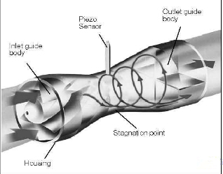 旋進(jìn)漩渦流量計(jì)的原理:旋進(jìn)旋渦流量計(jì)是在文丘里管的前面加了一個(gè)起旋器,產(chǎn)生一次漩渦,再經(jīng)過(guò)文丘里管產(chǎn)生二次漩渦,二次漩渦的漩渦頻率與流體流速成正比
