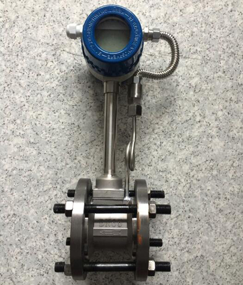 2、溫度補(bǔ)償一體型渦街流量計(jì)還帶有溫度傳感器,可以直接測量出飽和蒸汽的溫度并計(jì)算出壓力,從而顯示飽和蒸汽的質(zhì)量流量。