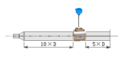 若傳感器安裝點的上游有>15°漸擴管,傳感器上游應(yīng)有不小于18D的等徑直管段,下游應(yīng)有不小于5D的等徑直管段。
